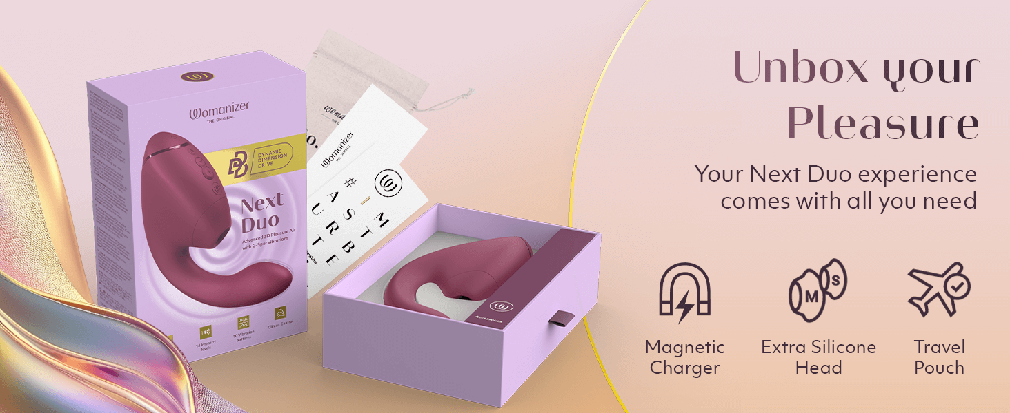 Với sự kết hợp giữa công nghệ hút không tiếp xúc, đầu rung hỗ trợ và các tính năng thông minh, Womanizer Next Duo là lựa chọn phù hợp cho những ai đang tìm kiếm một thiết bị kích thích cao cấp, hiện đại và có khả năng cá nhân hóa trải nghiệm cao.